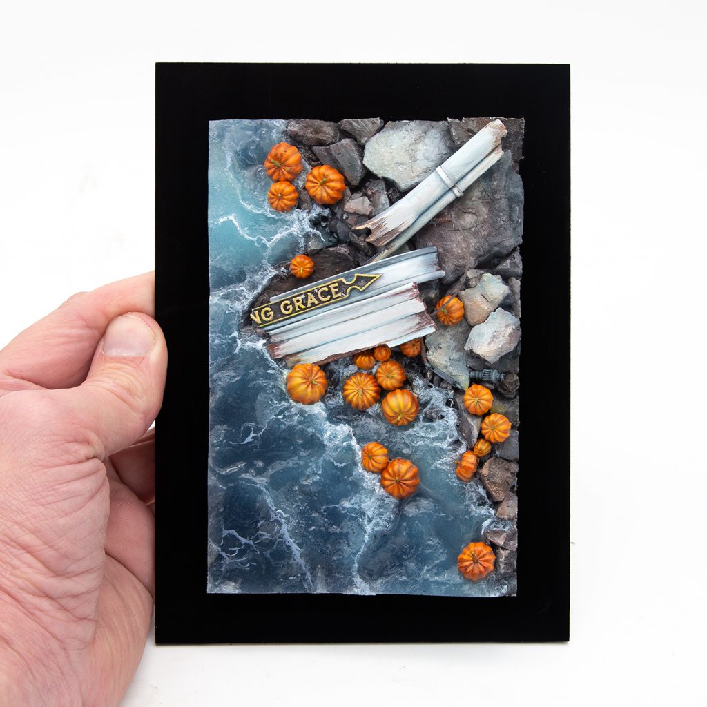 I didn't want to make a Halloween Diorama like I did about 3 years ago because 🙄, but I fell by chance on that poem from Richard Brautigan. I saw thousands of pumpkins last night come floating in on the tide, bumping up against the rocks and rolling up on the beaches; it must be Halloween in the sea. So what you have here is basically a visual translation. Hope you like it!